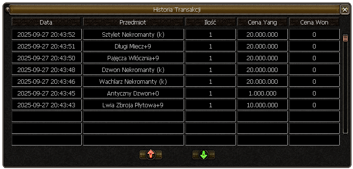 W specjalnym oknie znajdziecie wszystkie kupione oraz sprzedane przedmioty.