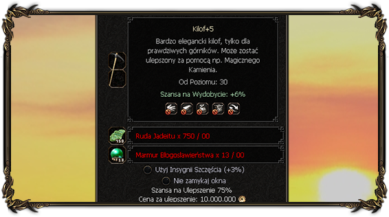 Kilofy ulepszamy standardowo: Zwojami Błogosławieństwa oraz Magicznymi Kamieniami.
