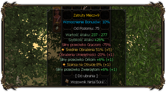 Władca ➤ +2250 PŻ, +12% Silny przeciwko Potworom, +7% Metiny, +7% Bossy