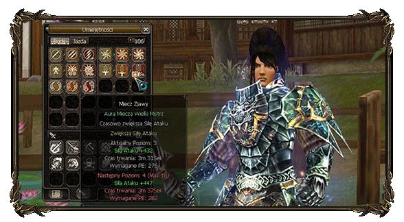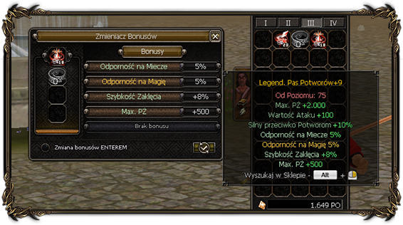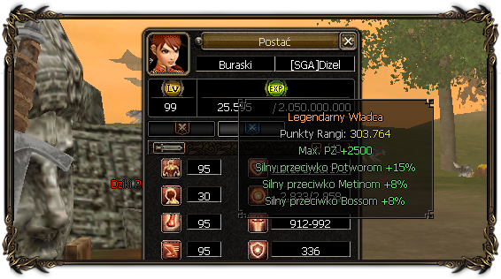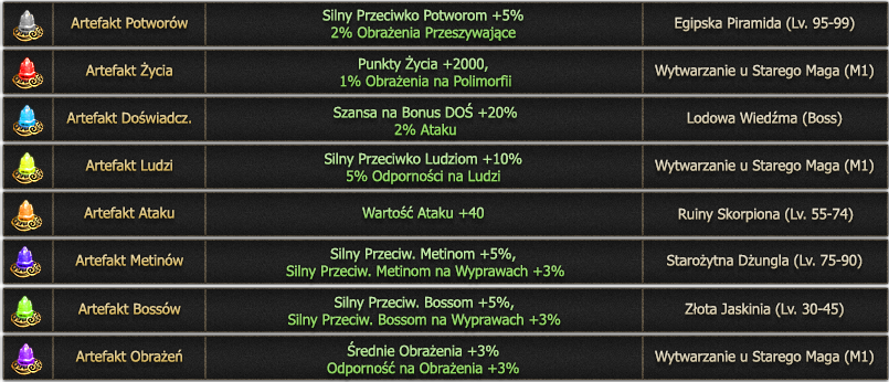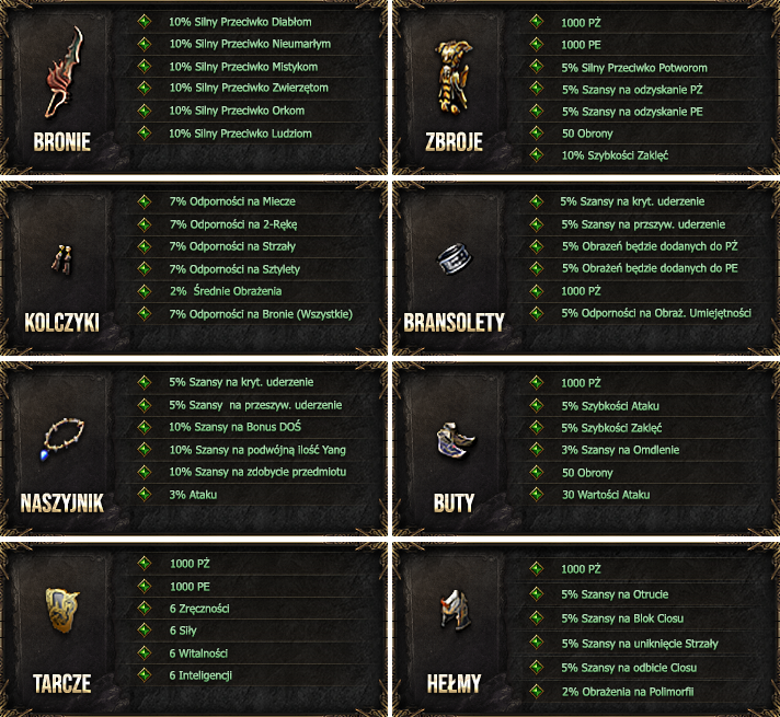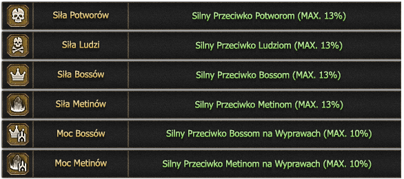 Wartość zmniejszonych obrażeń tyczy się głównie metinów, bossów oraz władców (nie potworów).