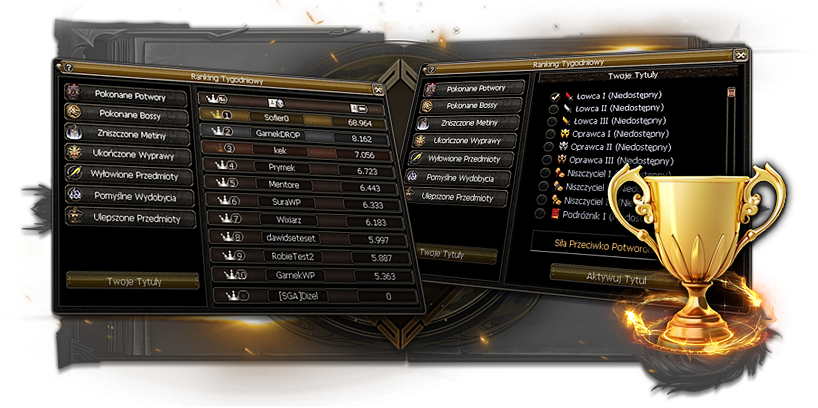 Wprowadziliśmy Ranking Tygodniowy, który znacząco zwiększa rywalizację między graczami.