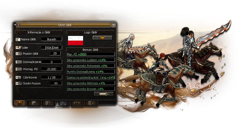 Gildie rozwijamy za pomocą Ksiąg Gildii, które wypadają dosłownie z każdego potwora, metina oraz bossa.