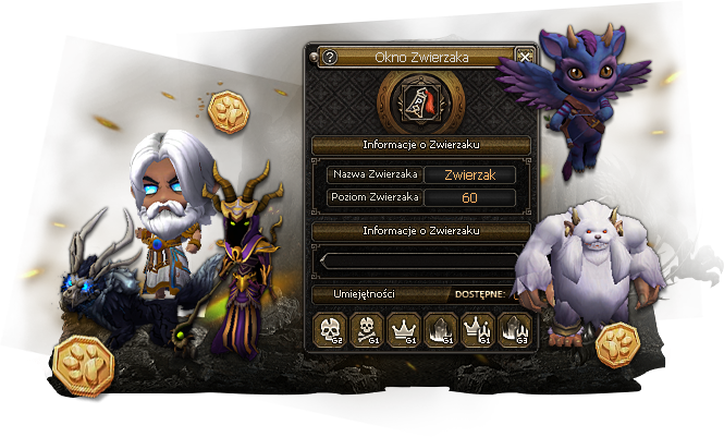 W pakiecie startowym znajdziesz także AutoBuffa, Zwierzaka (1 poziom) oraz Konia (1 poziom).