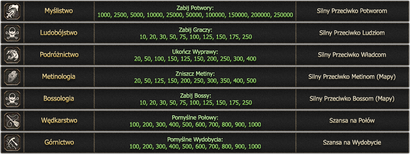 Za pokonanie bossów, władców oraz metinów zdobywacie Punkty Osiągnięć.