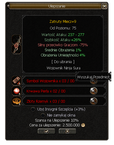 Ulepszenia Przedmiotów ➜ Szansa na Ulepszenie (1% / 3% / 5%)